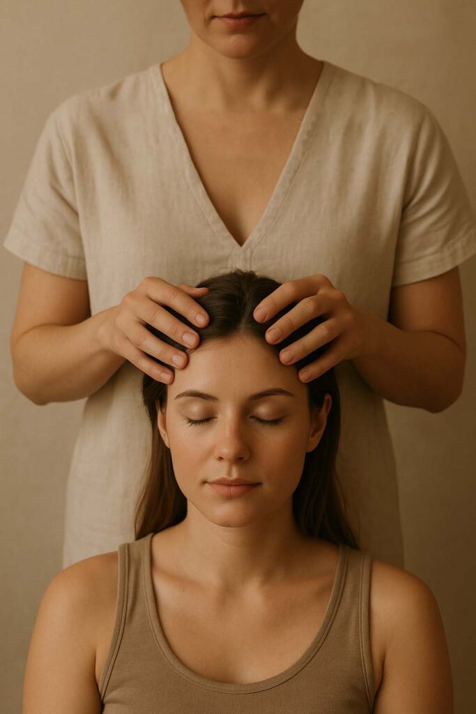 Massagem tradicional indiana que liberta tensões na cabeça, pescoço e ombros.