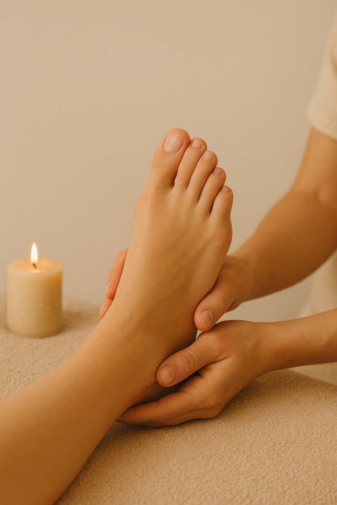 Estimulação de pontos reflexos nos pés para equilibrar órgãos e sistemas do corpo.